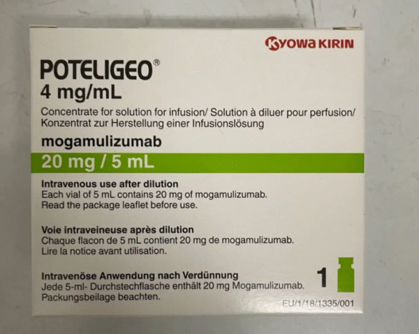 ليمفوما الخلايا التائية الجلدية (CTCL): يُوصف للمرضى البالغين، وخاصةً أولئك الذين انتكس مرضهم أو لم يستجيبوا بشكل كافٍ للعلاجات السابقة (مثل العلاج الكيميائي والعلاج الإشعاعي). الفطار الفطراني (MF) ومتلازمة سيزاري (SS): يُمكن لموغليزوماب إطالة فترة البقاء على قيد الحياة دون تطور المرض في هذين النوعين الفرعيين النادرين عندما يكونان مقاومين للعلاجات التقليدية.