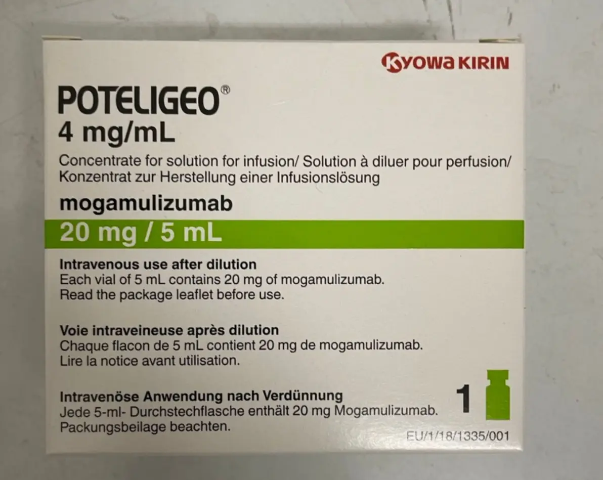 موغاموليزوماب هو جسم مضاد وحيد النسيلة يستهدف CCR4، ويُستخدم بشكل رئيسي لعلاج ليمفوما الخلايا التائية الجلدية (CTCL) المتكررة أو المقاومة للعلاج، بما في ذلك الفطار الفطراني (MF) ومتلازمة سيزاري (SS). يثبط هذا الدواء هجرة الخلايا السرطانية وتكاثرها عن طريق حجب مستقبل CCR4، مع تنشيط الجهاز المناعي في الوقت نفسه للقضاء على الخلايا غير الطبيعية.