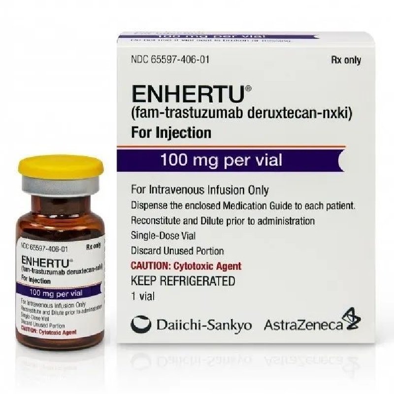 Enhertu (Fam-trastuzumab deruxtecan-nxki) هو مُقترن دواء-جسم مضاد (ADC) لعلاج الأورام الإيجابية لـ HER2، طُوّر بالتعاون بين شركتي أسترازينيكا ودايتشي سانكيو. آلية عمله هي إيصال الأدوية السامة للخلايا إلى الخلايا السرطانية من خلال استهداف HER2 المُفرط التعبير عنه على سطح الخلايا السرطانية، مما يُحقق علاجًا دقيقًا.