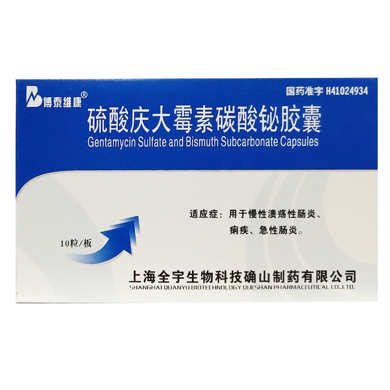 يمكن استخدام كبسولات كربونات البزموت كبريتات الجنتاميسين لعلاج التهاب القولون التقرحي المزمن، والدوسنتاريا، والتهاب الأمعاء الحاد.