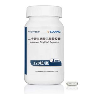 إيثيل حمض إيكوسابنتاينويك هو حمض دهني متعدد غير مشبع ω-3 يمكنه تثبيط تأثيرات البروتينات الدهنية السيئة، وتقليل الارتباط والترسب على الجدار الداخلي للأوعية الدموية، ومساعدة كوليسترول البروتين الدهني عالي الكثافة (HDL-C) في إزالة الدهون الزائدة من الجسم. جدران الأوعية الدموية. في 26 يوليو 2012، وافقت إدارة الغذاء والدواء الأمريكية (FDA) على كبسولات حمض الإيكوسابنتاينويك إيثيل الناعمة من شركة أمارين فارماسيوتيكالز (الاسم التجاري: Vascepa) لعلاج فرط ثلاثي جليسريد الدم، ليصبح ثاني دواء موصوف للأحماض الدهنية المتعددة غير المشبعة ω-3 في السوق. . وفي الوقت نفسه، يعد إيثيل حمض إيكوسابنتاينويك هو الدواء المساعد الوحيد المعتمد من إدارة الغذاء والدواء للحصول على الجرعة القصوى المسموح بها من الستاتينات وأول دواء تمت الموافقة عليه لتقليل مخاطر أحداث القلب والأوعية الدموية المتبقية بشكل فعال.